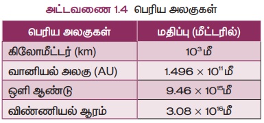 அட்டவணை 1.4 பெரிய அலகுகள்