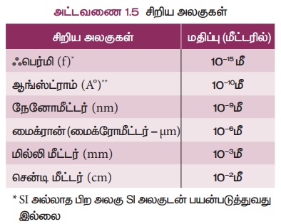 அட்டவணை 1.5 சிறிய அலகுகள்