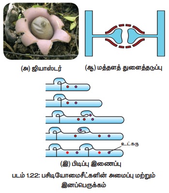 பூஞ்சையில் நடைபெறும் இனப்பெருக்க முறைகளுக்கான படம் 1.19-ல் கொடுக்கப்பட்டுள்ளது.