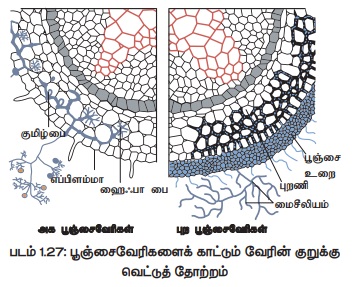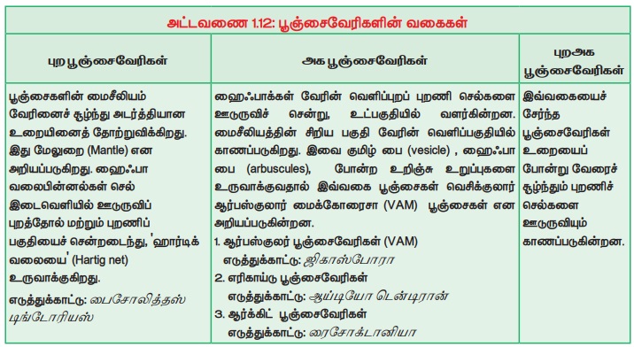உதவுகின்றன பூஞ்சைவேரிகள் மூன்று வகைப்படும் (படம் 1.24)அட்டவணை 1.12.