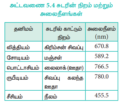 அட்டவணை 5.4 சுடரின் நிறம் மற்றும் அலைநீளங்கள்