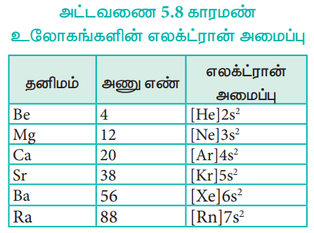 அட்டவணை 5.8 காரமண் உலோகங்களின் எலக்ட்ரான் அமைப்பு
