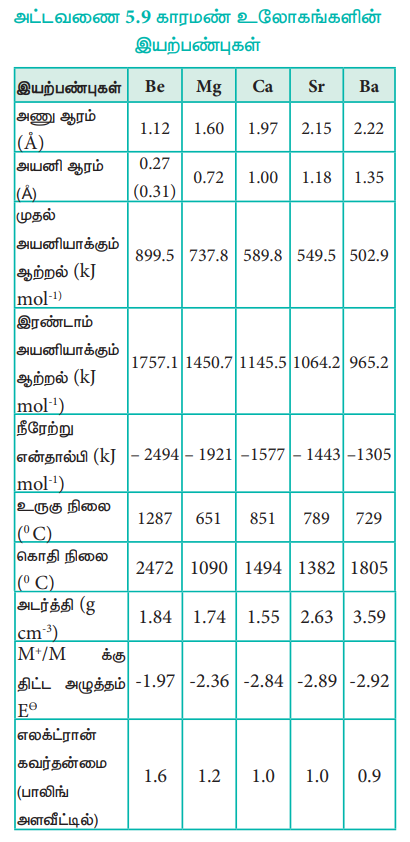அட்டவணை 5.9 காரமண் உலோகங்களின் இயற்பண்புகள்