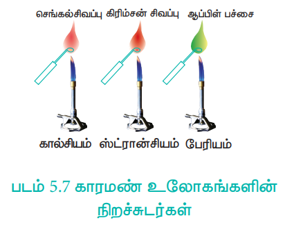 படம் 5.7 காரமண் உலோகங்களின் நிறச்சுடர்கள்