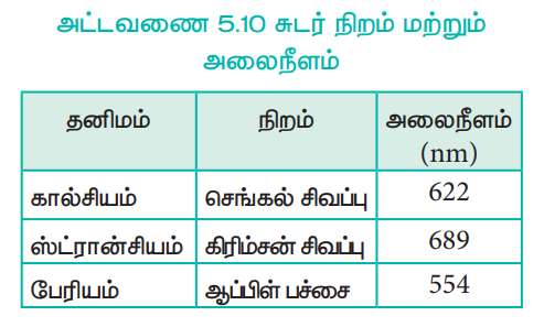 அட்டவணை 5.10 சுடர் நிறம் மற்றும் அலைநீளம்