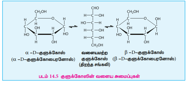 படம் 14.5 குளுக்கோஸின் வளைய அமைப்புகள்