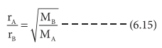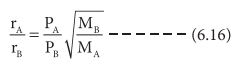rA / rB = (PA / PB ) √ MB / MA ---------- (6.16)