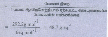 = மோலார் நிறை / 1 மோல் ஆக்சிஜனேற்றியால் ஏற்கப்பட்ட எலக்ட்ரான்களின் மோல்களின் எண்ணிக்கை.