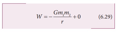 ஈர்ப்பியல் விசை ஒரு கவர்ச்சி விசை என்பதால் நிறை m2 நிறை m1, ஆல் கவரப்படுகிறது. எனவே நிறை m2, ஐ, r லிருந்து r' க்கு நகர்த்த வெளிப்புறத்திலிருந்து வேலை செய்ய வேண்டிய தேவை இல்லை. இங்கு அமைப்பானது தனது ஆற்றலை செலவழித்து வேலை செய்கிறது. எனவே செய்யப்பட்ட வேலை எதிர்க்குறி பெறும். இது படம் 6.13 (a) இல் காட்டப்பட்டுள்ளது.