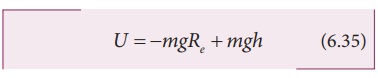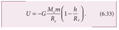 சமன்பாடு 6.36 மற்றும் 6.37-ல் உள்ள mgRe கோவை, ஈர்ப்பு நிலை ஆற்றல் மாறுபாடு காண்பதில் எவ்வித மாற்றத்தையும் ஏற்படுத்தவில்லை. எனவே சமன்பாடு 6.35 ல் முதல் கோவையை புறக்கணிக்கலாம். அல்லது சுழி என எடுத்துக் கொள்ளலாம். ஆகவே புவி பரப்பிலிருந்து h உயரத்தில் உள்ள நிறை m இல் சேமிக்கப்பட்டுள்ள ஈர்ப்பு நிலை ஆற்றல் U = mgh என கூறலாம்.
