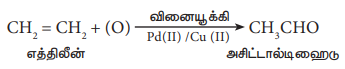 தற்போது, அசிட்டால்டிஹைடு ஆனது, வணிகரீதியாக, நீர்ம ஊடகத்தில், ஈத்தீனை அயனி வினையூக்கி முன்னிலையில் ஒருபடியில் ஆக்ஸிஜனேற்றம் செய்து பெறப்படுகிறது. இம்முறையில் 90% அளவு விளைபொருள் கிடைக்கிறது.