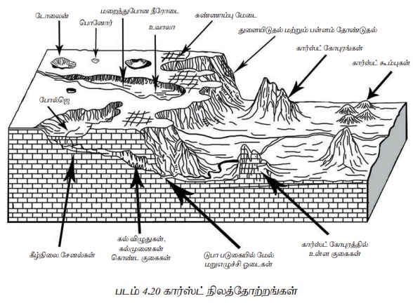 கார்ஸ்ட் நிலத்தோற்றம் (நிலத்தடி நீரின் செய்கையினால்) கரைதல் மற்றும் படிவித்தல் செயல்முறையால் சுண்ணாம்புக்கல், டோலமைட் அல்லது ஜிப்சம் போன்றவை காணப்படும் நிலத்தோற்றத்தில் ஏற்படுகிறது.