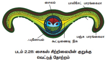 நோக்கியும் அமைந்துள்ளன. புரோட்டோசைலத்தினை மையத்தில் கொண்ட இடைநிலை