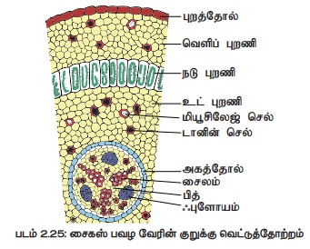 சைகஸின் சிற்றிலை குறுக்குவெட்டுத் தோற்றத்தில் மேற்புறத்தோல்,
