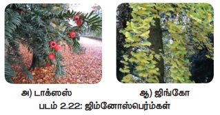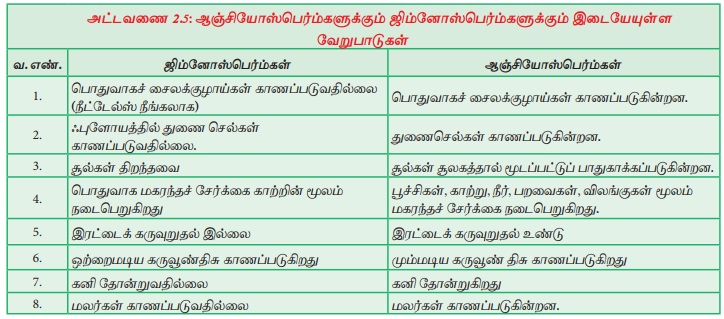 ஜிம்னோஸ்பெர்ம்களுக்கும் இடையேயுள்ள வேறுபாடுகள் அட்டவணை 2.5 ல் கொடுக்கப்பட்டுள்ளது