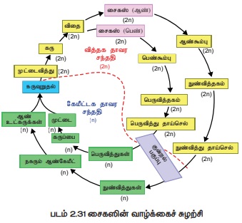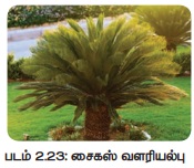 சைகஸ் ஒருபால் வகை (Dioecious) தாவரமாகும். அதாவது ஆண் மற்றும் பெண் கூம்புகள் தனித்தனித் தாவரங்களில் தோன்றுகின்றன. இது இரண்டு வகையான வித்துகளைத் தோற்றுவிக்கும் மாற்று வித்துத் தன்மை கொண்ட தாவரமாகும் (படம் 2.29).