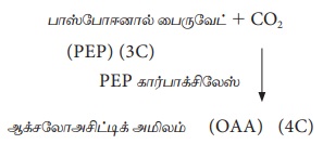 இலையிடைத்திசு செல்களின் ஸ்ட்ரோமாவில் CO2, PEP - யால் நிலைப்படுத்தப்பட்டு ஆக்சலோஅசிட்டிக் அமிலம் உருவாகிறது.