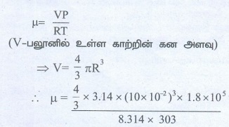 • பலூனில் உள்ள காற்றில் மோல்களின் எண்ணிக்கை = ?