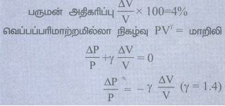 8. வெப்பப்பரிமாற்றமில்லா நிகழ்வில் காற்றின் பருமன் 4% அதிகரித்துள்ளது எனில் அழுத்த மாற்றத்தின் சதவிகிதம் என்ன? (காற்றுக்கு γ = 1.4).