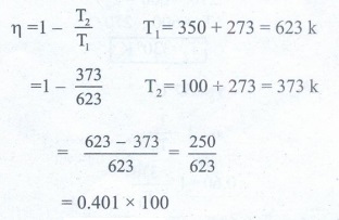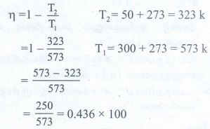 • கார்னோ இயந்திரத்தின் வெப்பநிலை (T1) = 327°C (327 + 273 = 600k)