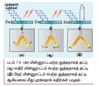 இலைகள் மூடிக் கொள்கின்றன (படம் 7.6 (ஆ )) நேர் மின்னூட்டம் பெற்ற துத்தநாகத் தட்டின்