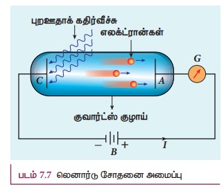 மீது புற ஊதாக் கதிர்கள் விழும்போது எலக்ட்ரான்கள் உமிழப்படுகின்றன. அவை நேர்மின் தட்டு