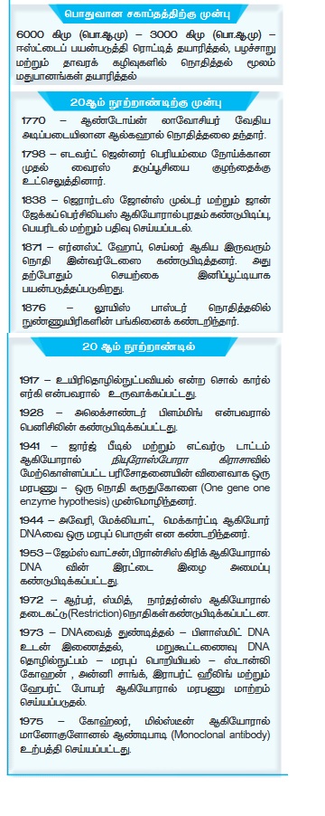 12 வது தாவரவியல் : அலகு 4 : உயிரிதொழில்நுட்பவியல் நெறிமுறைகளும் செயல்முறைகளும் : உயிரிதொழில்நுட்பவியல் வரலாற்றுப் பார்வையில் - தாவரவியல் : 12 ஆம் வகுப்பு