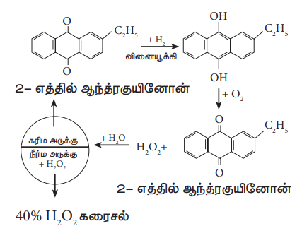 தொழிற்முறையில், 2 - ஆல்கைல் ஆந்த்ர குயினாலை சுய ஆக்சிஜனேற்றம் அடையச் செய்வதன் மூலம் தற்போது ஹைட்ரஜன் பெராக்சைடு தயாரிக்கப்படுகிறது.