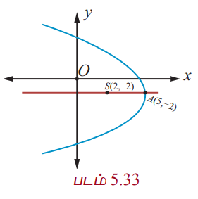 முனை (5, −2) மற்றும் குவியம் (2, −2) உடைய பரவளையத்தின் சமன்பாடு காண்க.