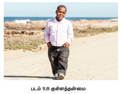 குழந்தைகளில் வளர்ச்சி ஹார்மோன் குறைவாகச் சுரப்பதால் குள்ளத்தன்மை ஏற்படுகின்றது. இதனால், எலும்பு மண்டல வளர்ச்சி மற்றும் பால் முதிர்ச்சி தடைபடுகிறது . இவர்கள் அதிகபட்சம் 4 அடி உயரம் மட்டுமே இருப்பர் (படம் 11.8).