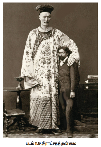 குழந்தைகளில், வளர்ச்சி ஹார்மோன் உபரியாகச் சுரப்பதால் இராட்சதத் தன்மை ஏற்படுகின்றது. இதனால், எலும்பு மண்டல வளர்ச்சி மிகையாக அமையும் (8 அடி உயரம் வரை). மேலும், கை, கால்கள் வளர்ச்சிக்கேற்ப உடல் உள்ளுறுப்புகளின் வளர்ச்சி விகிதம் இருப்பதில்லை (படம் 11.9).