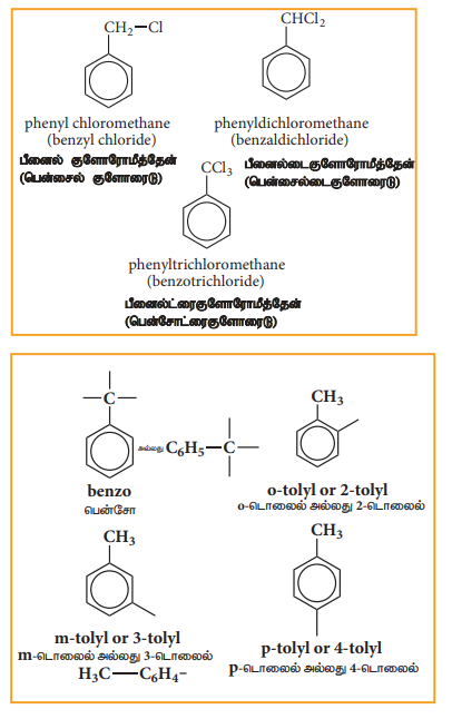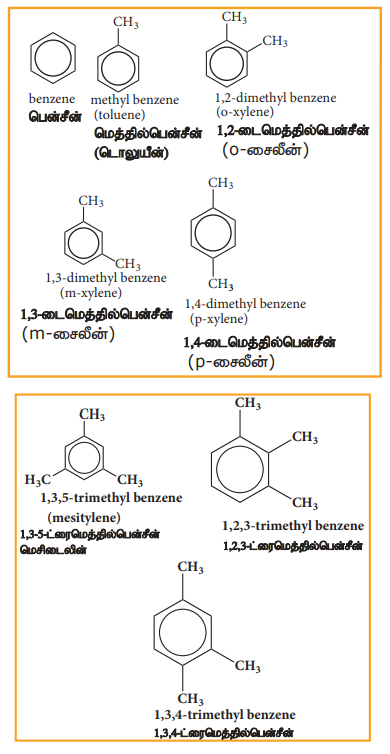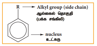 (A) உட்கரு: அரோமேட்டிக் சேர்மத்தில் காணப்படும் பென்சீன் வளையம் உட்கரு எனப்படுகிறது.
