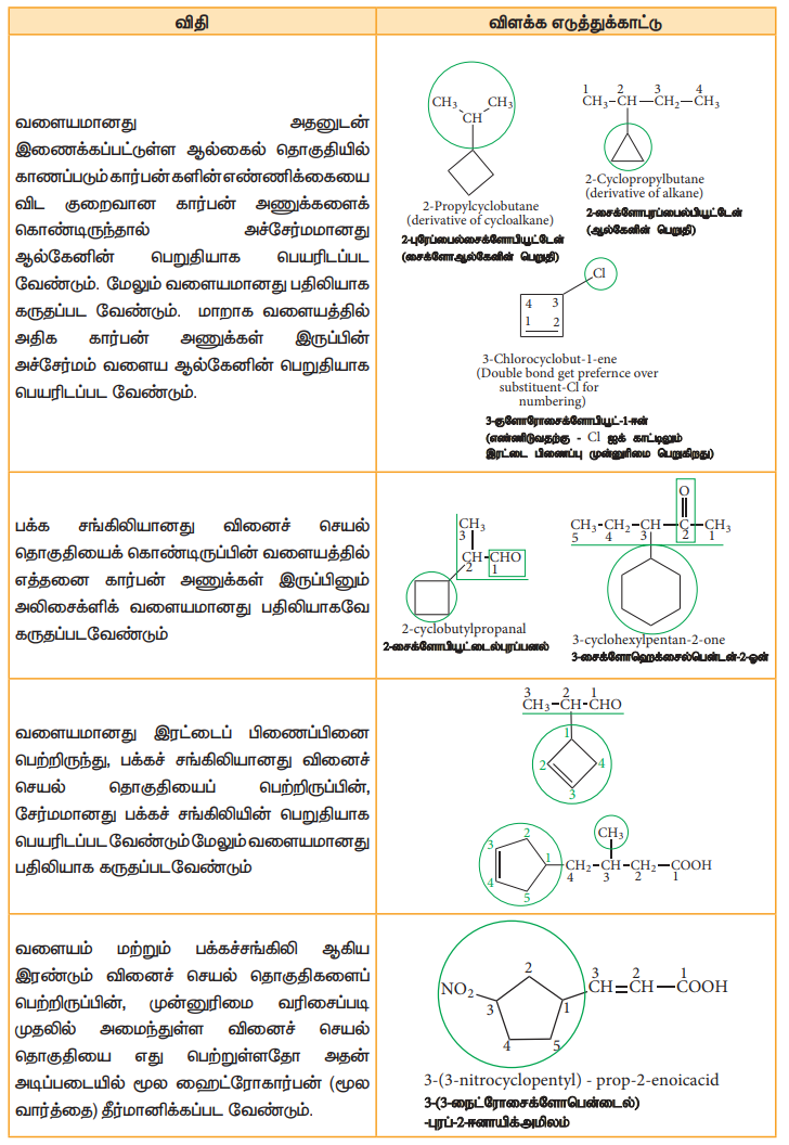 5. அலிசைக்ளினிக் சேர்மங்களுக்கு பெயரிடும் போது, பின்வரும் கூடுதல் விதிகளையும் பின்பற்ற வேண்டும்.