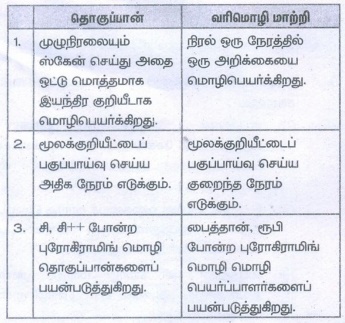 2. தொகுப்பான் மற்றும் வரிமொழி மாற்றியை வேறுபடுத்துக.