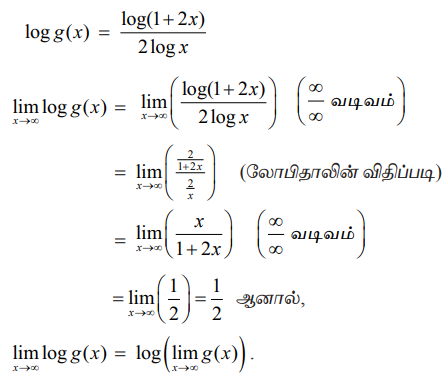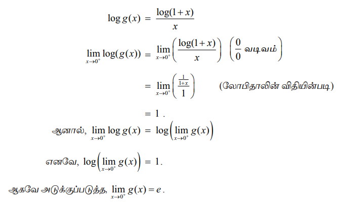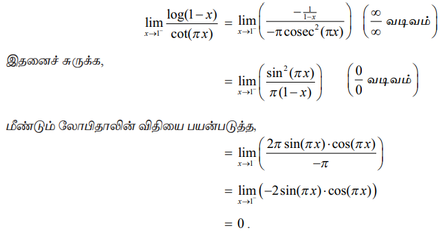 (2) நாம் லோபிதாலின் விதியை பயன்படுத்த, limx→α log(g(x))ஆனது (0/0) அல்லது (∞/∞) வடிவத்தில் இருக்க வேண்டும்.