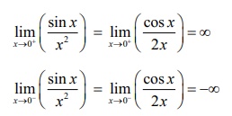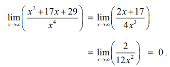 இது (∞ /∞) எனும் தேரப்பெறா வடிவில் உள்ளது. இந்த எல்லையைக் காண லோபிதாலின் விதியை நாம் பயன்படுத்தலாம்.