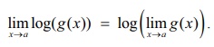(1) A = limx→α g(x) மடக்கைச் சார்பின் தொடர்ச்சித் தன்மைக்காக A > 0 எனக்கொண்டு,