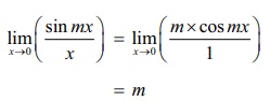x = 0 என நேரடியாக பிரதியிடும்போது நாம் 0/0 என்ற தேரப்பெறா வடிவத்தைப் பெறுகிறோம். ஆகவே, லோபிதாலின் தேற்றத்தைப் பயன்படுத்த,