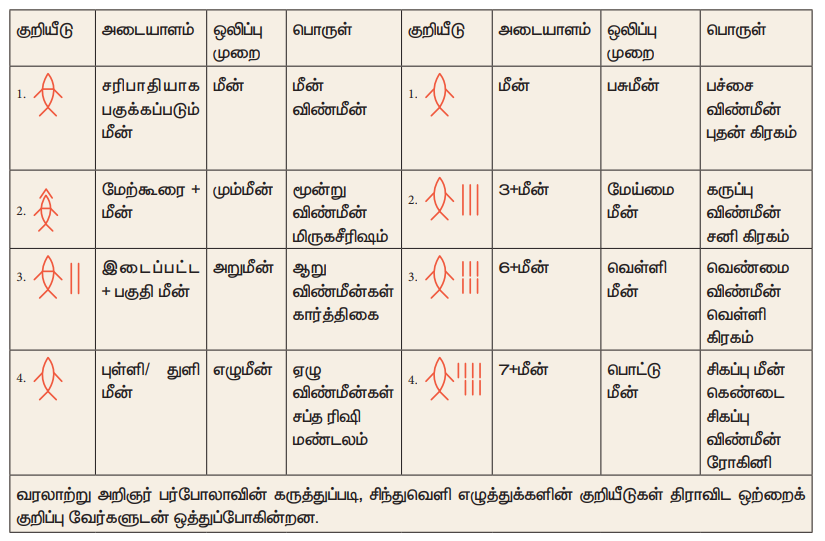 ● மே 2007ஆம் ஆண்டு தமிழ்நாடு தொல்லியல் துறையால் பூம்புகாருக்கு அருகில் மேலபெரும்பள்ளம் என்னும் இடத்தில் கண்டெடுக்கப்பட்ட பானைகளில் உள்ள அம்பு போன்ற குறியீடுகள் மொகஞ்சதாரோவில் கண்டெடுக்கப்பட்ட இலச்சினைகளைப் போன்று உள்ளன.