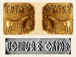 சிந்துவெளி முத்திரைகளில் இவ்வகையான பெரிய காளை உருவம் பரவலாகக் காணப்படுகிறது.