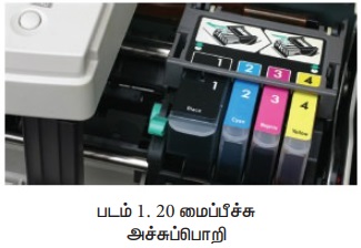 (3) அச்சுப்பொறிகள் (Printers) : தாள்களில் தகவல்களை அச்சிட அச்சுப்பொறிகள் பயன்படுத்தப்படுகிறது. அச்சுப்பொறிகள் இரண்டு முக்கியப் பிரிவுகளாகப் பிரிக்கப்படுகிறது.