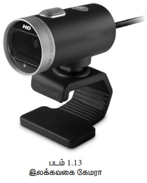 (11) இலக்கவகை கேமரா (Digital Camera): இந்த சாதனம் இலக்க (digital) வடிவில் நேரடியாகப் படங்களை எடுக்கிறது. இது சிசிடி (மின்னேற்றப்பட்ட இணை சாதனம்) - CCD (Charged Coupled Device) எனும் மின்னணு சில்லு (Electronic chip)-வை பயன்படுத்துகிறது. ஒளி வில்லை (lens) மூலம் வெளிச்சம் சில்லுவின் மீது விழும்போது ஒளிக்கதிர்கள் இலக்கமுறைக்கு மாற்றப்படுகிறது.