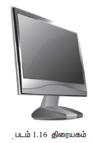 தகவலைத் திரையில் காட்டப் பொதுவாகப் பயன்படுத்தப்படும் வெளியீட்டு சாதனம் திரையகம் ஆகும். இது தொலைக்காட்சி பெட்டியைப் போன்றது. திரையகத்தில் படங்கள் பிக்செல்ஸ் (PIXELS) எனப்படும். படக் கூறுகளுடன் உருவாக்கப்படுகிறன. ஒரே வண்ணமுடைய திரையகம் கருப்பு மற்றும் வெள்ளை நிறத்தில் காட்டுகிறது. வண்ணத் திரையகம் பல நிறங்களில் காட்டுகிறது. சிஆர்டி (கத்தோட் ரே டியூப்) - CRT (Cathode Ray tube), எல்சிடி (லிக்விட் கிரிஸ்டல் டிஸ்பிளே)- LCD (Liquid Crystal Display) மற்றும் எல்ஈ டிலைட் ஏமிட்டிங் டையோட்கள்)- LED (Light Emitting Diodes) போன்ற பல்வேறு வகையான திரையகங்கள் கிடைக்கின்றன. திரையகம் தகவலை விஜிஏ (ஒளி உரு வரைபட வரிசை) - VGA (Video Graphics Array) மூலம் திரையில் காட்டுகிறது. விசைப்பலகை திரையகத்துடன் தொடர்பு கொள்ள ஒளிஉரு வரைபட அட்டை (Video Graphics Card) உதவுகிறது. இது கணிப்பொறி மற்றும் திரையகத்தின் இடையே இடைமுகமாக செயல்படுகிறது. அண்மையில் மதர்போர்ட்க ள் (motherboards) வரைபட அட்டைகளை உள்ளிணைந்ததாக வழங்குகிறது.
