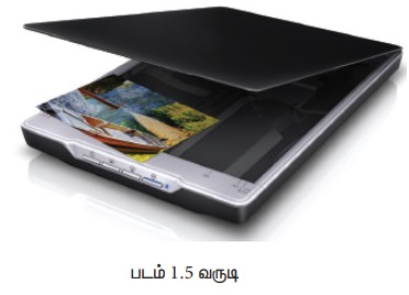 (3) வருடி (Scanner): கணிப்பொறியின் நினைவகத்தில் நேரடியாகத் தகவலை உள்ளிட வருடிகள் பயன்படுத்தப்படுகின்றன. இந்தக் கருவி ஒரு "உலர் மின்நகல் இயந்திரம்" (Xerox machine) போல் செயல்படுகிறது. எழுதப்பட்ட அல்லது அச்சிடப்பட்ட, புகைப்படங்களை உள்ளடக்கிய எந்தவொரு தகவலையும் வருடி கணிப்பொறிக்கு இலக்கமுறை தகவலாக மாற்றியமைக்கிறது.