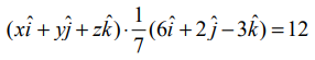 இச்சமன்பாடு ஒரு தளத்தின் திட்ட வடிவ வெக்டர் சமன்பாடாகும். எனவே, கொடுக்கப்பட்ட சமன்பாடு ax+by+cz+d=0 என்பது ஒரு தளத்தைக் குறிக்கிறது. இங்கு