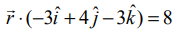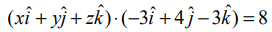 ஒரு தளத்தின் கார்டீசியன் சமன்பாடு 3x−4y+3z=−8 எனில், தளத்தின் வெக்டர் சமன்பாட்டை திட்ட வடிவில் காண்க.