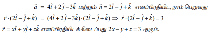 எனவே, தேவையான தளத்தின் வெக்டர் சமன்பாடு காண இச்சமன்பாட்டில்