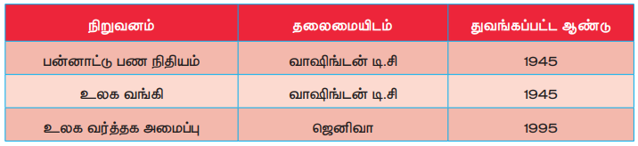 2. பன்னாட்டு பண நிதி, உலக வங்கி மற்றும் உலக வர்த்தக அமைப்பு ஆகியவற்றின் நோக்கங்கள், பணிகள் மற்றும் சாதனைகள் பற்றி அறிந்து கொள்ளுதல்.