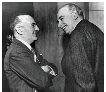 ஜான் மேனார்டு கீன்ஸ் (வலது) மற்றும் ஹேரிடெக்ஸ்டர் வொய்ட் (இடது) ஆகியோர்கள் உலக வங்கி மற்றும் பன்னாட்டு பணநிதியம் ஆகிய இரண்டையும் தோற்றுவிக்க காரணமானவர்களாவர்