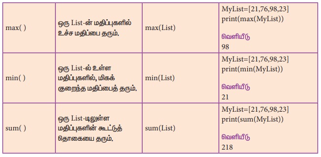 பயன்படுகிறது. (அதாவது, List-ல் உள்ள உறுப்புகளின் எண்ணிக்கை ).பொதுவாக,len()செயற்கூறுList-ல்